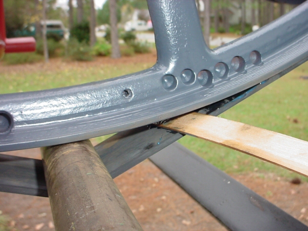 Notice slight crown in center of wheel. You can see light under both sides of the straight edge. The crown is actually greater than what this picture looks like. |