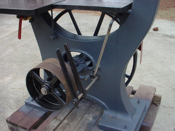 The next big challenge in finishing this band saw was re-creating the belt shifting linkage to allow the operator to shift the flat belt from the loose pulley to the tight pulley. Of course, all of the original linkage was long gone and all that I had to work from were some old catalog pictures.