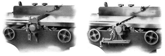 Excerpt from the 1910 Crescent CatalogThis new Jointer Guard is now furnished regularly on every Crescent Jointer, without additional charge. Other jointer guards have to be unbolted from machine to clear the top of jointer, and when once removed, are usually neglected, and not replaced. But the Crescent guard is radically different in this respect. It can be folded down against side of machine in an instant, leaving table clear; and can in an instant be brought up to working position again. No wrench or tools of any kind required for changing from one position to another; simply lift the latch, then hinge the guard around till it clears the edge of table, then hinge down against side of machine, where it will be entirely out of the way. To replace into position, the operation is simply reversed, when the latch will snap into place. by means of a spring. To change from one position to another takes less than five seconds time; and may be done while machine is in motion, as the guard has clearance along its front edge, and can not get into the knives. When in position it covers all of the unused portion of the head, by a sliding cover, held in place by a thumb screw.