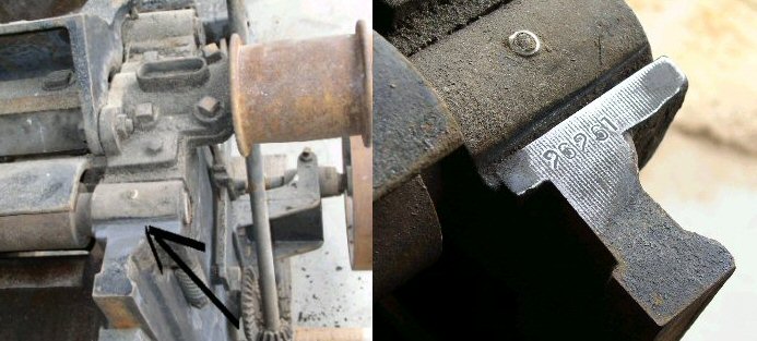 Serial numbers have also been found stamped onto the wheel and shaft of the upper band saw wheel as above. |