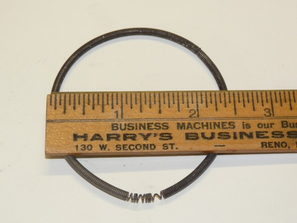 With the length of ~8" confirmed, on to making a new spring. The original OEM necklace is made out of an extension spring, using 3/32 .018 wire. That specific wire can be hard to find, but a very close approximation is a 1/8 .018 wire that is available from on-line sources such as McMaster-Carr (www.mcmaster.com, this example was $4.00 plus s/h for a 36" length). The 1/32 difference in outside diameter (OD) should not matter for purposes of this part. Because the old spring was deformed and stretched, the new piece that was cut for this project was about 1/2" shorter total length (7.5") than the original spring.