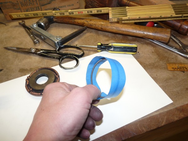 First, it is necessary to measure the length of the spring. Obviously, the easiest way to measure it would be to simply cut it and lay it straight to measure. But sometimes it may be worth measuring it intact as a circle, perhaps to save it for emergency use later or to compare the new one against as a final check on correct size. Note that different motors have commutators of different size, so the dimensions shown here may not be correct for a given motor.