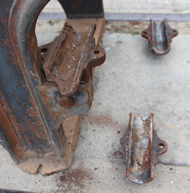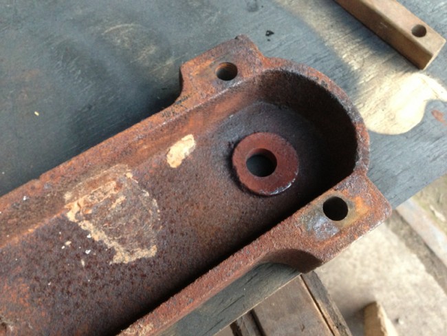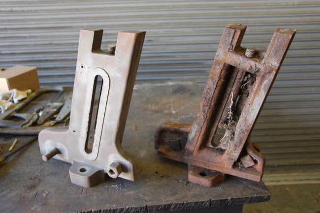 When I cleaned up the two cast iron brackets, I noticed that one had been broken and brazed back together. While the repair is probably just fine, I think that I am going to drill and tap two holes from the side and put some screws in there to give it some extra strength. There can actually be a good bit of force put on that casting and I would rather make the repair better while I have it all apart rather than having to deal with it later on.