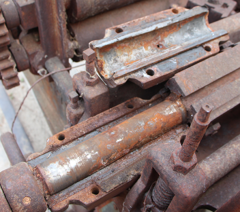 While the issues that I uncovered today are all by no means minor, it does appear that the rest of the machine is for the most part there - including all four heads. The good news is that I did not see any broken parts that will need to be repaired or replaced. One issue that I do see is that the steel parts on the machines (shafting, heads, rollers, nuts, bolts, etc.) are all severely rusted and pitted. Many, if not most, of these parts will need to be totally replaced. The good news is that the cast iron parts (the majority of the machine) appear to be in pretty good shape all things considered. And, as I said before, I am sure that I will uncover many other unknown problems as I dig into this restoration.