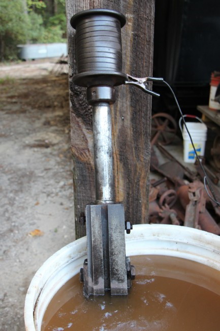 And finally, I flipped the main cutter-head that has been cooking in the spooge tank for a couple of days. I took a Scotchbrite pad and cleaned up the part above the water and sprayed it down with some WD-40 to keep it from rusting. I was very happy with how well the part that I cleaned up did clean up! The bearing surface (at least on this side) cleaned up very smooth and after polishing out a bit on the lathe, I think that it will be ready to go. I also got the rust off of the cutter-head down to bare metal with very little effort. I actually can't wait to let it cook for another couple of days and pull it out and clean it up for good!