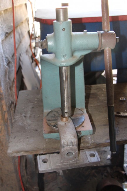 I only had about an hour after work this afternoon - not enough time to get too deep in anything very involved. So, I spent the time just piddling on some little things that would be quick and easy. This included pressing some shafts out of gears, hand wheels and such. I will show this one picture though - just because it is kind of cool: