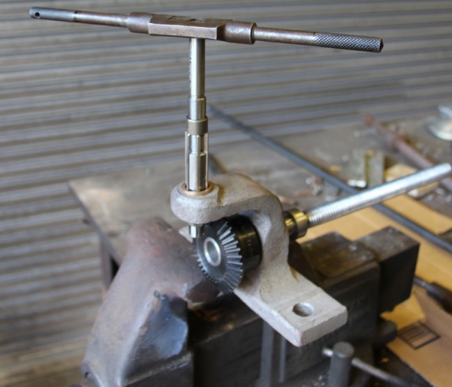 And finally, a tapered pin was inserted and pressed in place to key the gear onto the shaft. This is exactly how the originals were attached.