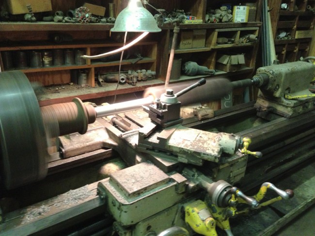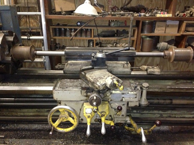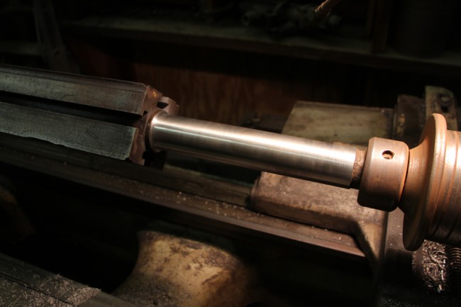 I started the morning off by finishing cleaning up the second journal on the bottom cutter-head. With everything already set up from the first one, I was able to make short work out on that part of the day. About 30 min later, I was through turning the journal, and I then spent probably another 45 min polishing both journals with finer and finer grits of emery cloth until I had them with a near mirror finish.