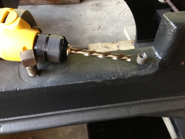 Before I could do that though, I had to remove a broken bolt in the main casting. Unfortunately, because of the terrible shape many of the steel bolts were in, several of these broke while I was trying to remove them. I got lucky on this one though! To get it out, I first used a center punch to punch a dimple as close to the center of the bolt as I could get. Next, I drilled a small hole using a left hand drill bit - the left hand bit twist in the same direction that the bolt turns to come out. With any luck, the drilling will actually loosen the broken bolt. I ended up drilling out the hole with several increasingly larger drill bits - the third size caught the screw and it just screwed right out! It does not get much easier than that:
