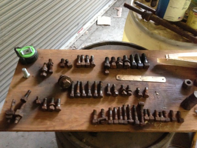 Here are some of the bolts sorted for "inventory" - all of which will need to have new ones made: