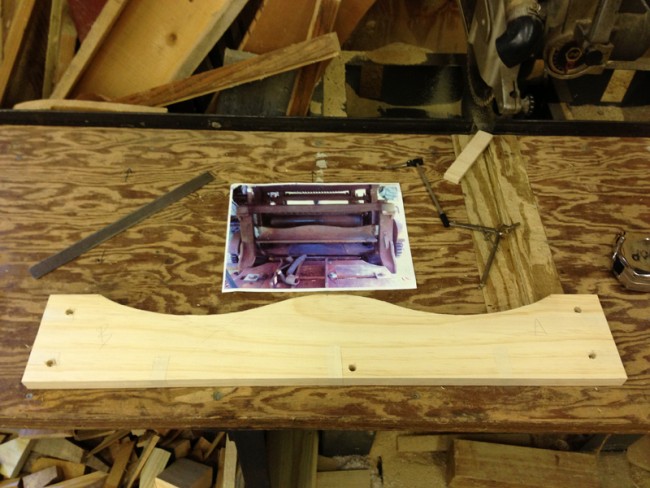 After I put the finishing touches on this pattern, I will have to make another pattern for the top piece that goes across the two uprights and has a crank on top to adjust the screws to elevate the pressure plate.
