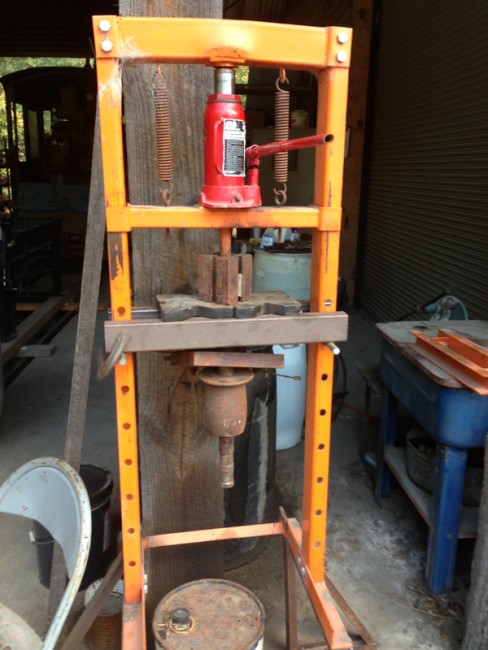 When I took the side heads off, I basically just took the bearing caps off and removed the head, pulley and the throat plate all in one unit - the head are supposed to come off easily, but not in the shape these are in. So, I first pressed the heads off of the shaft using my hydraulic press: