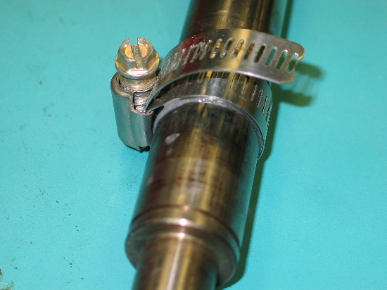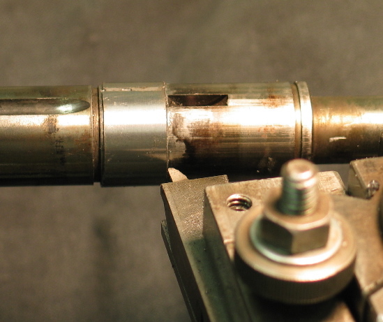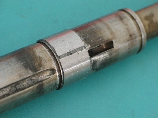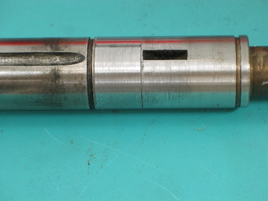 Act of despiration time. I cut a groove about 1/16" deep then made a bushing a little oversize on the OD and a little oversize (.005) on the ID for glue adhesion. I cut the bushing, spread it open, slid it down the shaft, coated the groove with JB weld, slipped the bushing into the slot, and clamped overnight with a hose clamp.