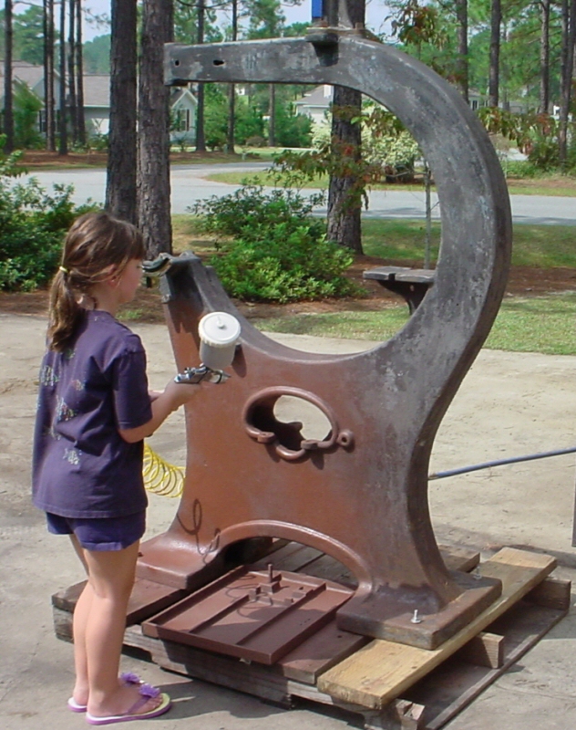 After Church today, I stopped by Lowe's and picked up some paint. I usually paint with Rustolium Enamel and I decided that for this project I would do the same. The only problem is that I want to paint this machine as close to original as possible. When I took the machine apart, I found a few pieces that still had the original paint on them - things like the back side of parts that had been bolted together. The original paint was somewhat faded and very dull but it was possible for me to get a close idea as to what the original color looked like. It is hard to describe in but lets just call it a dark gray - almost black but definitely gray.