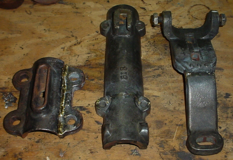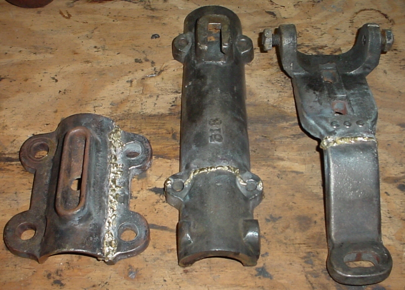 It has been a busy few days. Unfortunately, this has meant that the band saw restoration has not been on the list of things to do. I finally got a chance today to get the couple of broken parts brazed up. I made a trip to the local welding supply house and bought a handful of brazing rods - cost about $3.50. Then I made a trip to a local farmers shop that would let me borrow his torch for this job. Now, I first may tell you that I was a wee bit worried about doing this brazing job. The last time I brazed anything was back in my sophomore year of high school when I took a metals technology class. That was in 1982. I did a little reading to before hand to refresh my memory and just got in there and started brazing. It did not take long and it was all coming back to me. In the end, I got the three parts brazed back together and I thought that the brazing job was pretty good - epically since it has been 22 years since the last time! Picture below.