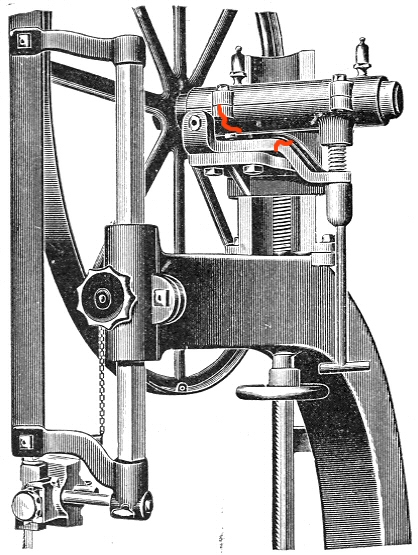 And to show where they go on the machine, here is a drawing of the upper bearing assembly where the parts came from with the red lines showing approximately where the breaks were: