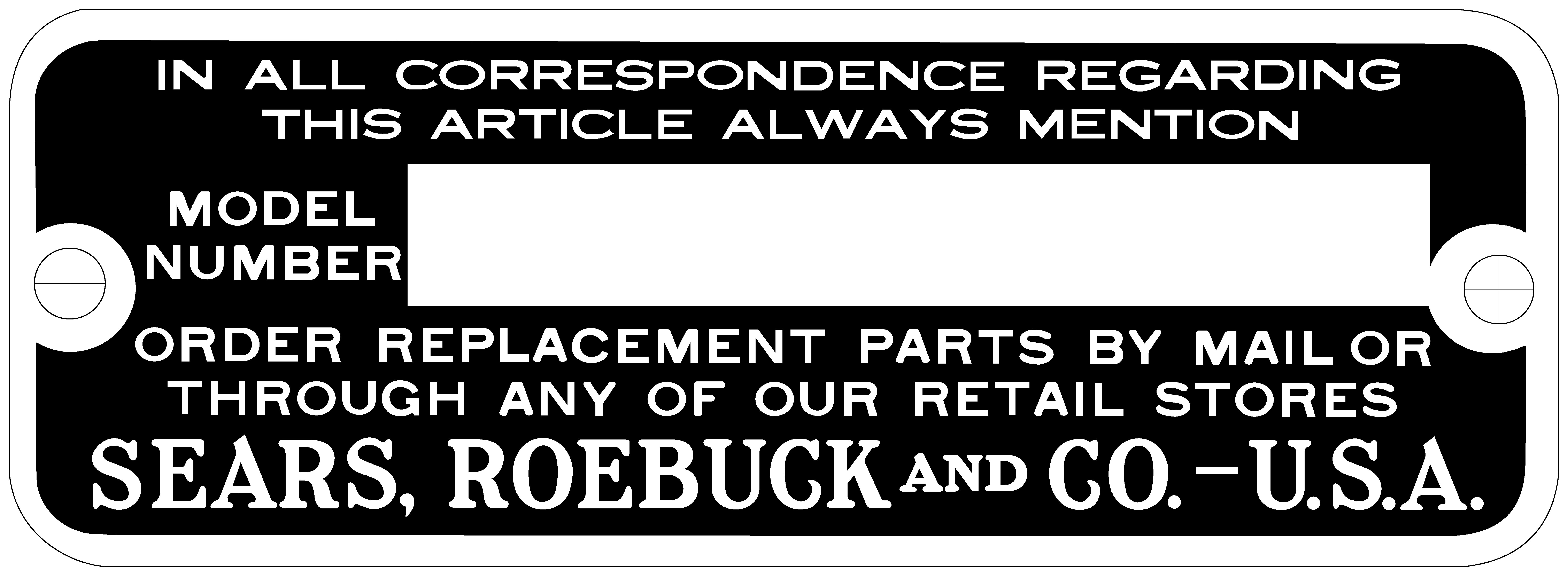Sears, Roebuck and Co. Model Number Badge from a 1930's Machine