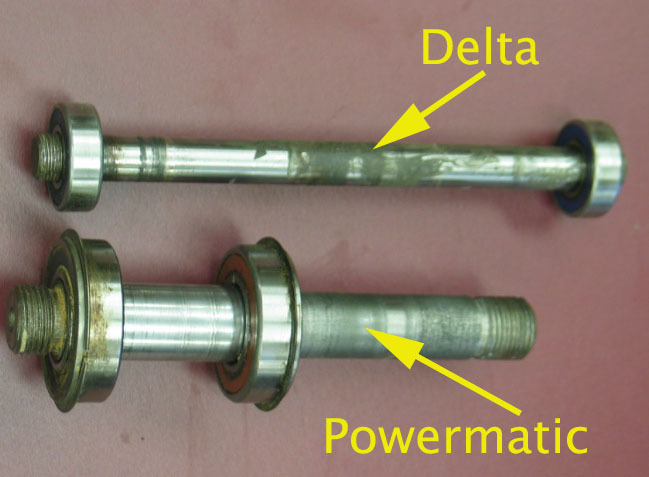 I replace a lot more Delta shafts than I do Powermatic ones, but they both usually need the crown worked over before the shaft gets gone.