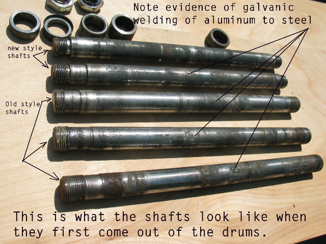 From Bob Vaughan. Details of upper shaft problems resulting from operator ignoring symptoms of bearings going bad. Also, note the problems one will have when pressing the shafts out of the drums.