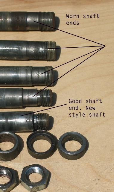 By Bob VaughanShaft fabrication is easy with a metal lathe. Take 15mm ground rod (see links below for source) and thread the ends to fit the fine nuts you have. Newer shafts have different threads to older ones (see pictures above).