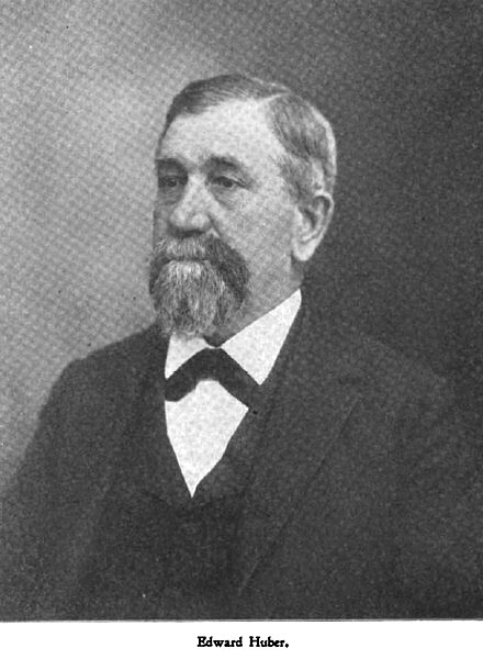 Edward Huber was born in Kelso, Dearborn County, Ind., September 1, 1837, and passed his boyhood on a farm near there. He was the youngest son of Phillip Huber, one of four brothers, who came to this country from Germany, Phillip being a cabinet maker, and after following his trade for a time, in the East, located on a farm near Kelso.
