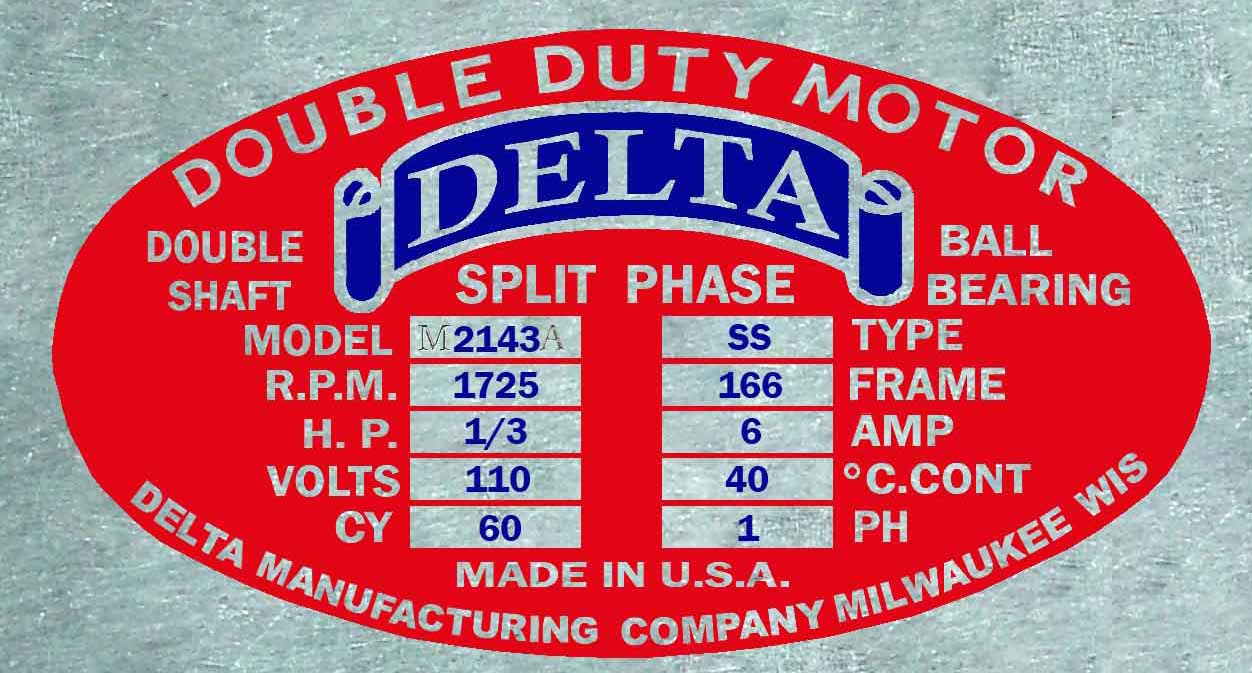 Delta Drill Press Motor Tag. Submitted by NeilB. |
