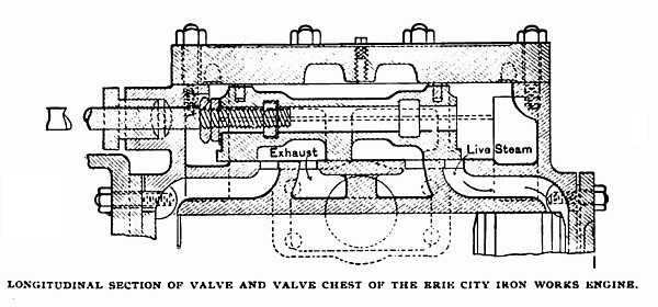 In case of over pressure in the cylinder, due to the presence of water, the valve is free to separate from the cylinder face and allow the water to be forced into the steam chest and the exhaust port the same as a plain, unbalanced slide valve, with the difference that it takes the relief-plate with it. The danger of accident from water in the cylinder does not, therefore, exist in anything like the degree that it does in engines whose construction does not allow the valve to be forced from its seat under any circumstances.