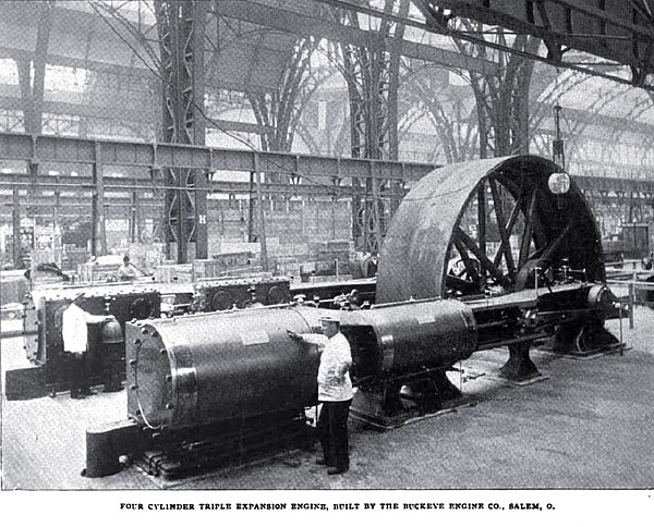 A four-cylinder, triple-expansion engine, of nominally 1ooo horse-power, but able to develop about 1500 horsepower under 150 pounds steam pressure or more, is exhibited by the Buckeye Engine Company of Salem, O. It is a condensing engine, and is fitted with a Wainwright surface condenser located under the floor.