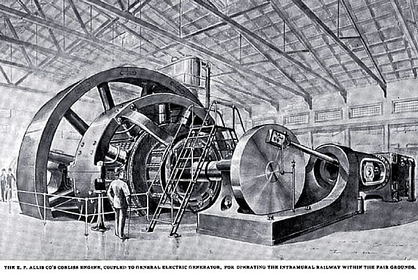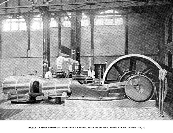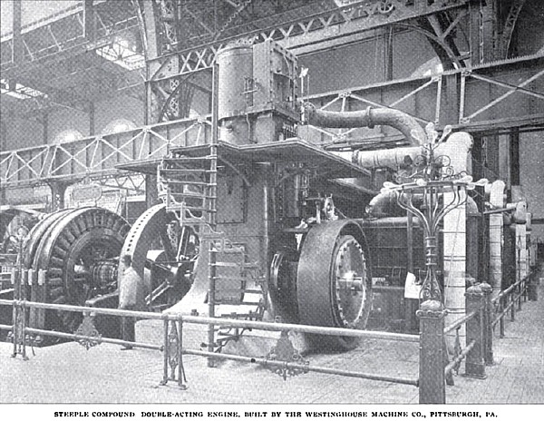 General Electric Company, of New York, and driven by a correspondingly imposing cross-compound condensing engine of the Reynolds-Corliss type, made by the